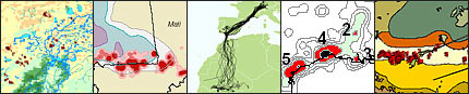 z.B. Klimadaten, Vegetationsdaten, Topografie, Satellitenbildern